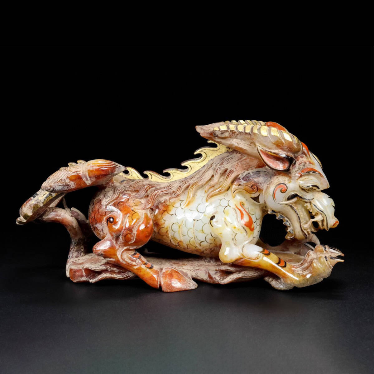 - 9+GV2246「東洋美術」 人間国宝 和田玉 極細工 古置物 中国古美術 【和田玉神話の獣白澤の古いコレクション】 旧物 珍品 収蔵価値が高い