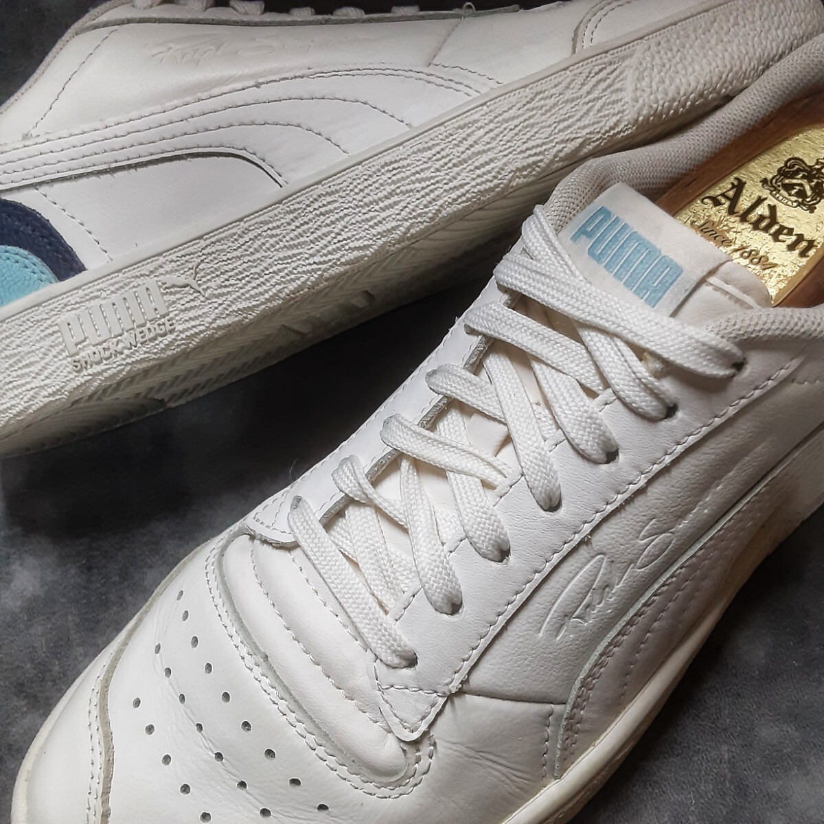 - 最値!良品!定12100円!別注シグネチャーカラー!プーマ×ラルフサプソン高級カウレザー スニーカー!ホワイト×ターコイズ!白水紺色 26cm