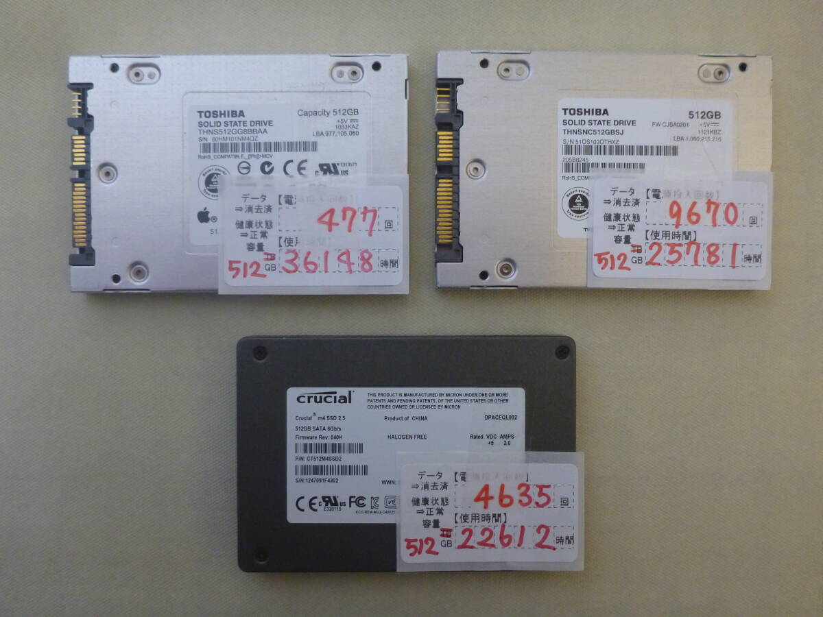 - T-08329 / SSD / 2.5インチ / SATA / 512GB / 本体厚み9.5mm / 3個セット / ゆうパケット / 消去済み / ジャンク扱い