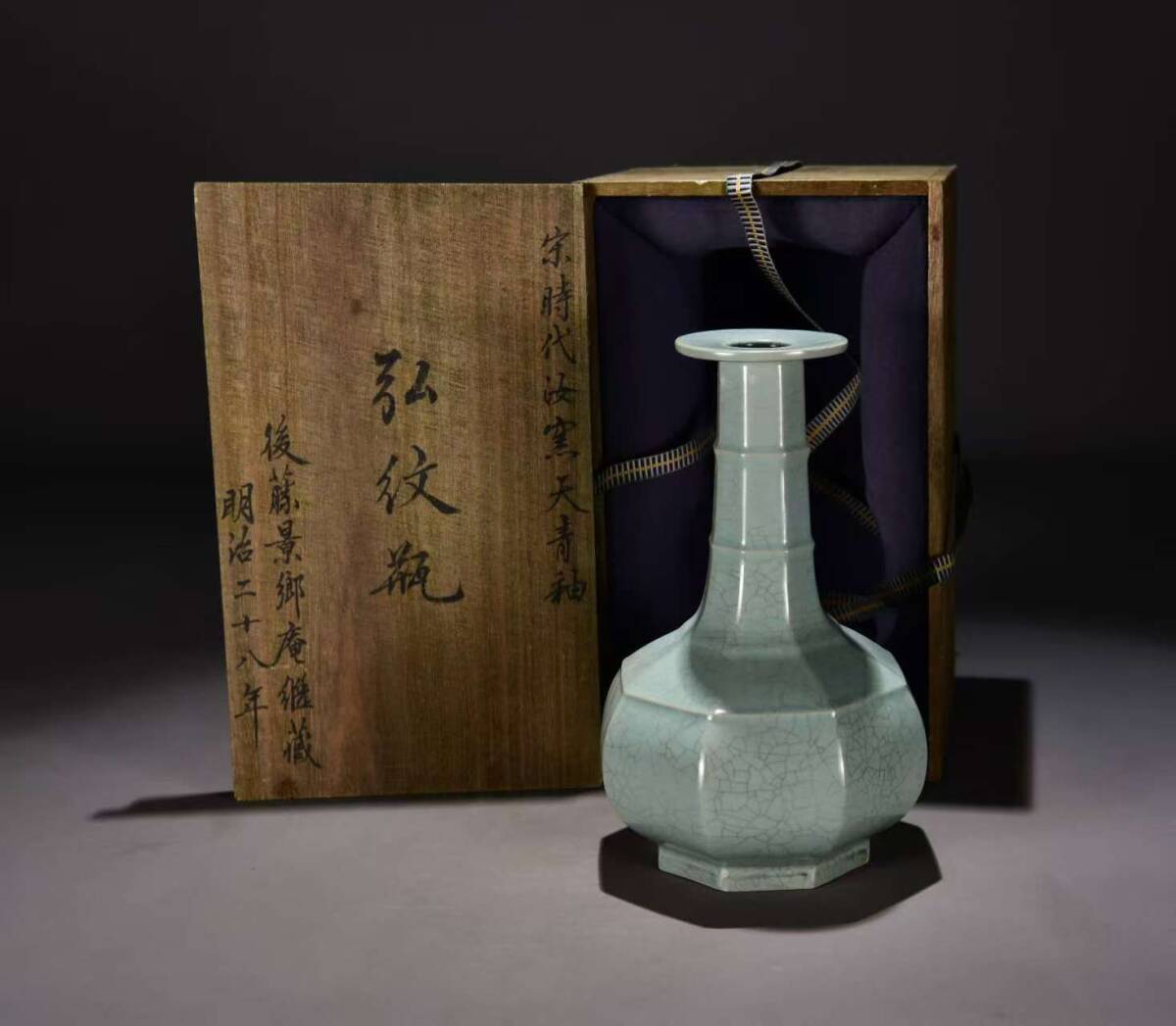 - 磁器 旧蔵 宋時代 汝窯 天青釉 弘紋瓶 古陶瓷 古擺件 古置物 中国古玩 骨董品 時代物 稀少唐物