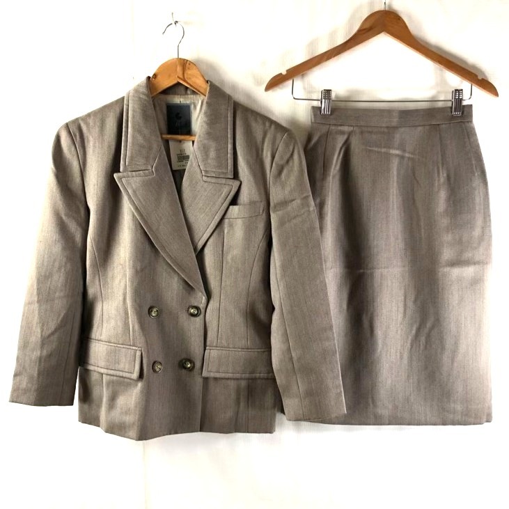 > エル ELLE スーツ ジャケット スカート スリット 裏地付き ボタン サイドポケット タグ付き ベージュ 963739