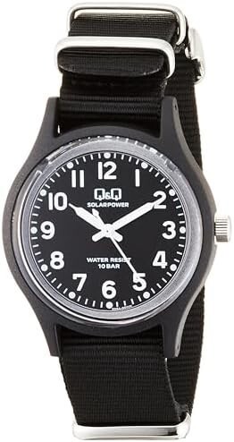 - [シチズンQ&Q] 腕時計 キューアンドキュー アナログ ソーラー 10気圧防水 ナイロンベルト E05A-001VK レディース ブラック