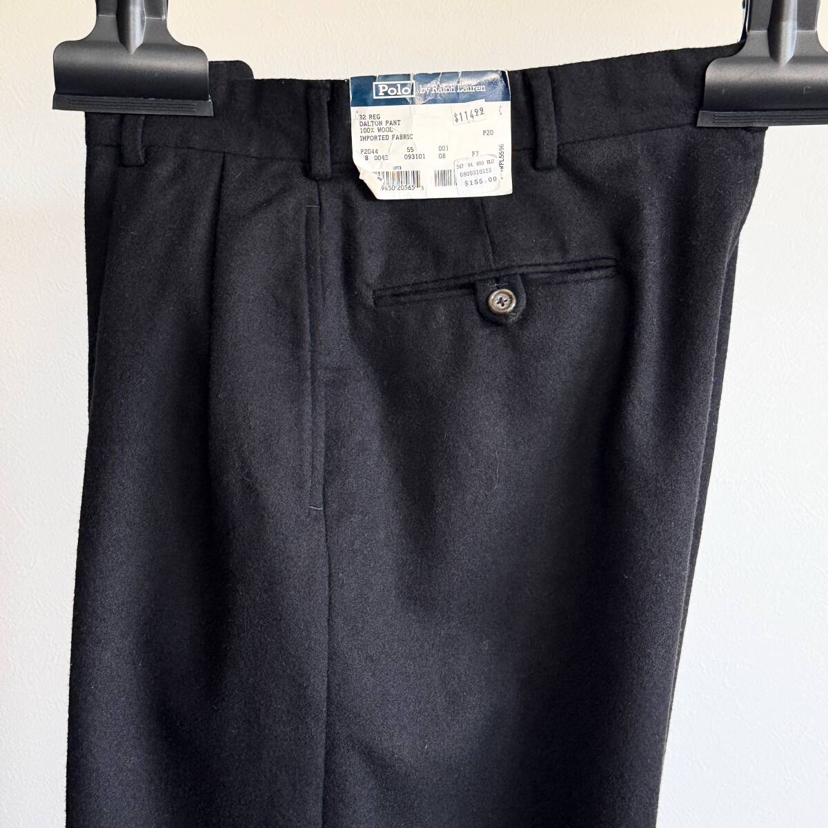 > 希少《 Dead Stock / USA / W32 》80s 90s デッド【 アメリカ製 Ralph Lauren 黒 ブラック フラノ ウール スラックス ビンテージ 】