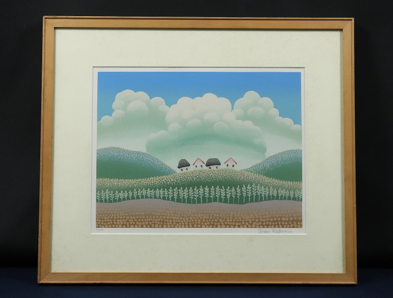 > 10902■【真作】イワン・ラブジン 「Country Town」 シルクスクリーン サイン有 ユーゴスラビアの画家 ナイーブアートの先駆者 額装