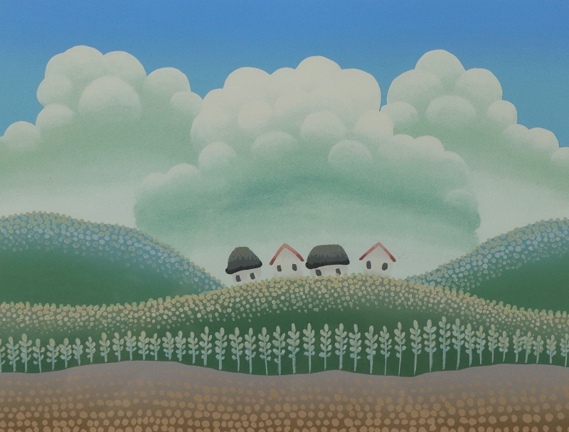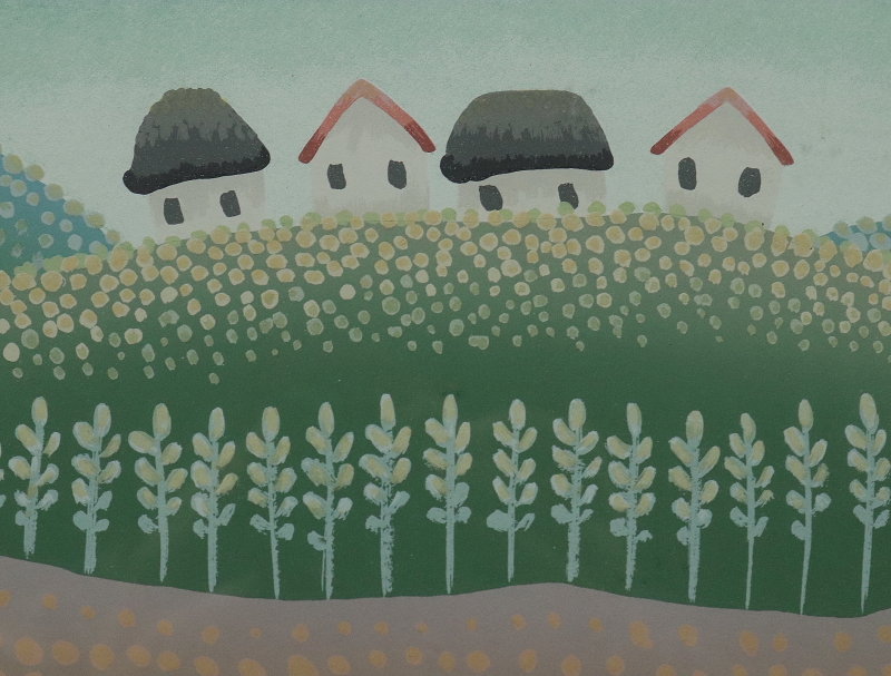 - 10902■【真作】イワン・ラブジン 「Country Town」 シルクスクリーン サイン有 ユーゴスラビアの画家 ナイーブアートの先駆者 額装