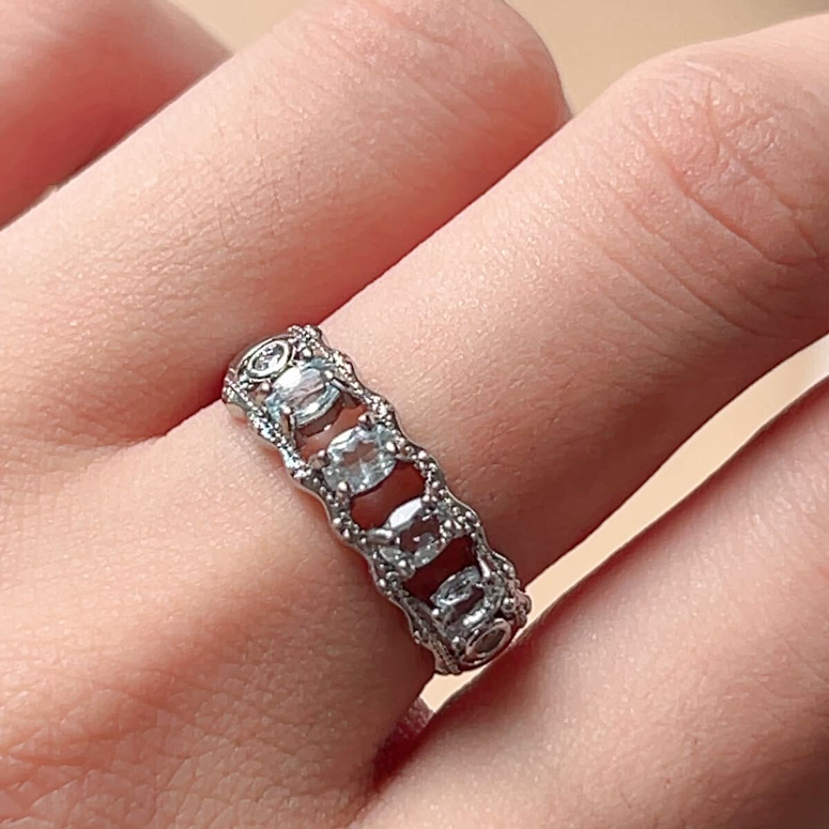 - ◇アクアマリン◇指輪◇リング◇ 高い透明度◇フリーサイズ◇天然石◇パワーストーン◇巾着袋付◇プレゼントにも 040R9256