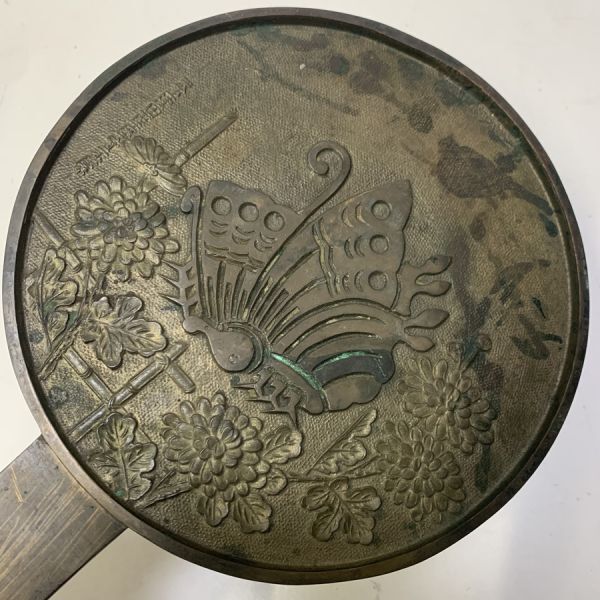 - 古鏡 手鏡 菊蝶図 天下一津田薩摩守永繁 直径18.5cm