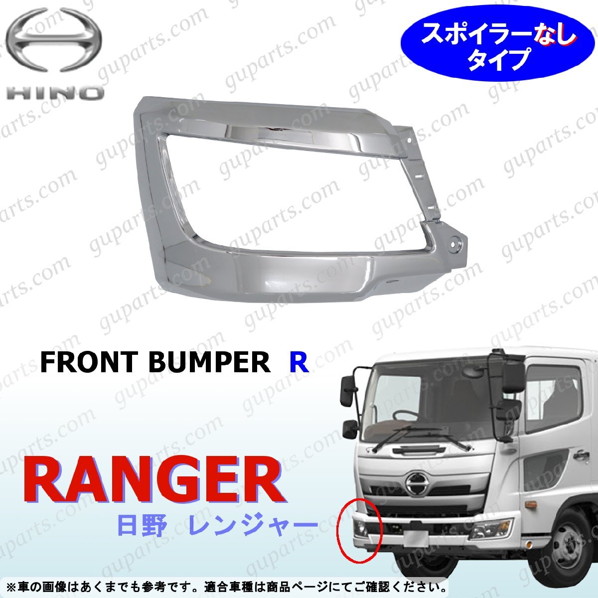 - 17 レンジャー フロント バンパー 右 スポイラーなし オール クローム メッキ デコトラ 外装 ヘッドライト カバー 日野 H29~