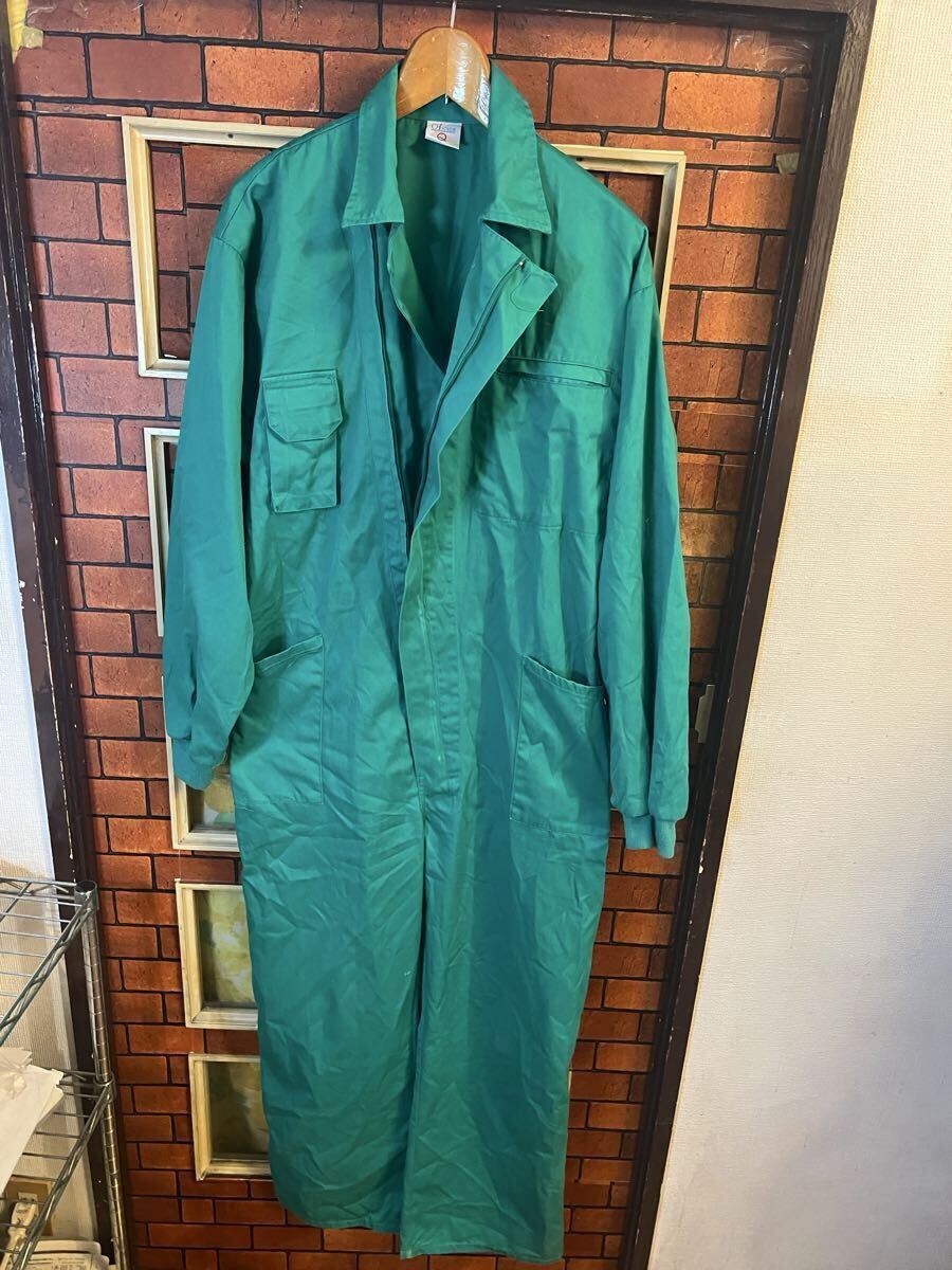 > つなぎ オールインワン ツナギ エンジニア アウトドア グリーン系 サイズM Lくらい ユーロ古着 フレンチワーク ウエストゴム