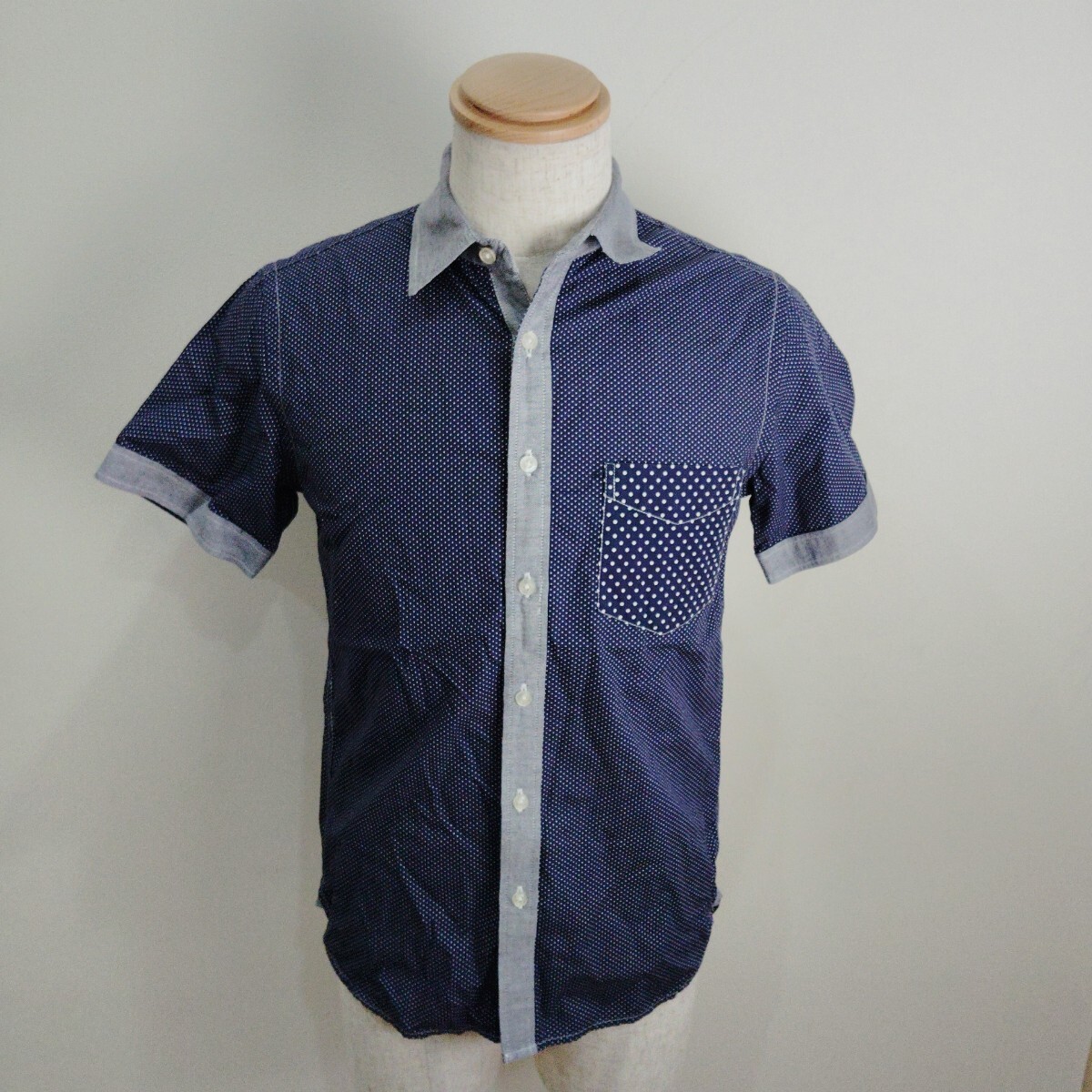 - 0925/S/BEAMSHEART メンズ 半袖シャツ ドット柄 ネイビー