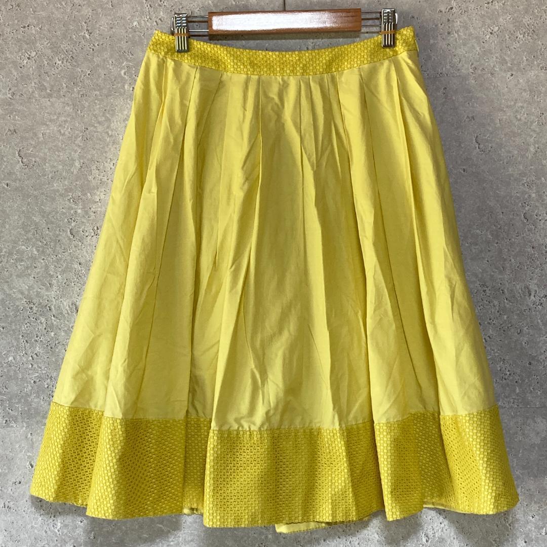 - クレージュ(38)メッシュ切替コットンフレアスカート*裏地*涼しい*きれいめ*黄