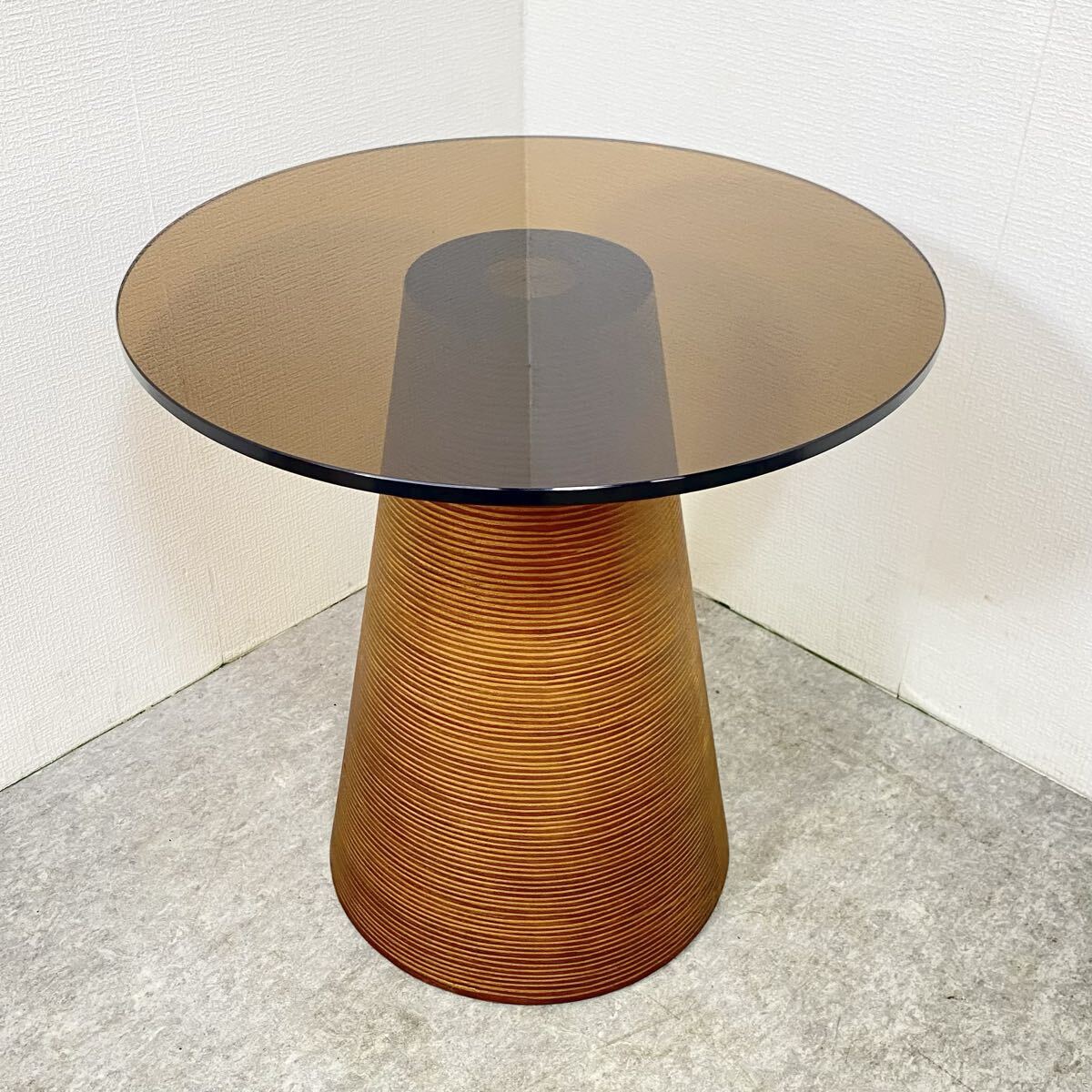 > ● 遠藤照明 サイドテーブル ガラス天板 木製 円形テーブル 丸テーブル ラウンドテーブル ラブリエ コーヒーテーブル ブラウン ●25092505Y