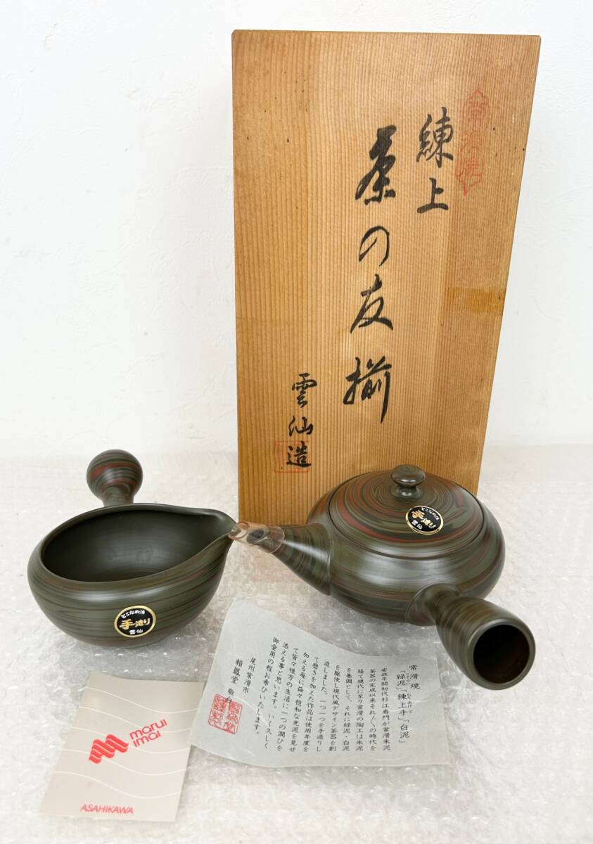 - ☆★☆【常滑焼】[雲仙造 練上 茶の友揃] 雲仙窯 急須 湯冷し 緑泥 未使用☆★☆