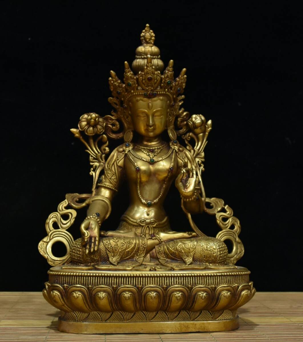 - 蔵友旧蔵出 銅製 塗金 寶石嵌 七眼白度母像 供奉仏像 希少珍品 貴重品 置物 古賞物 密宗密教 供養品 仏教美術品