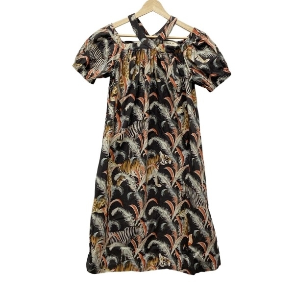 > ポール&ジョー Paul&Joe サイズ36 S - ダークグレー×レッド×マルチ レディース 半袖/ひざ丈/アニマル柄 ワンピース