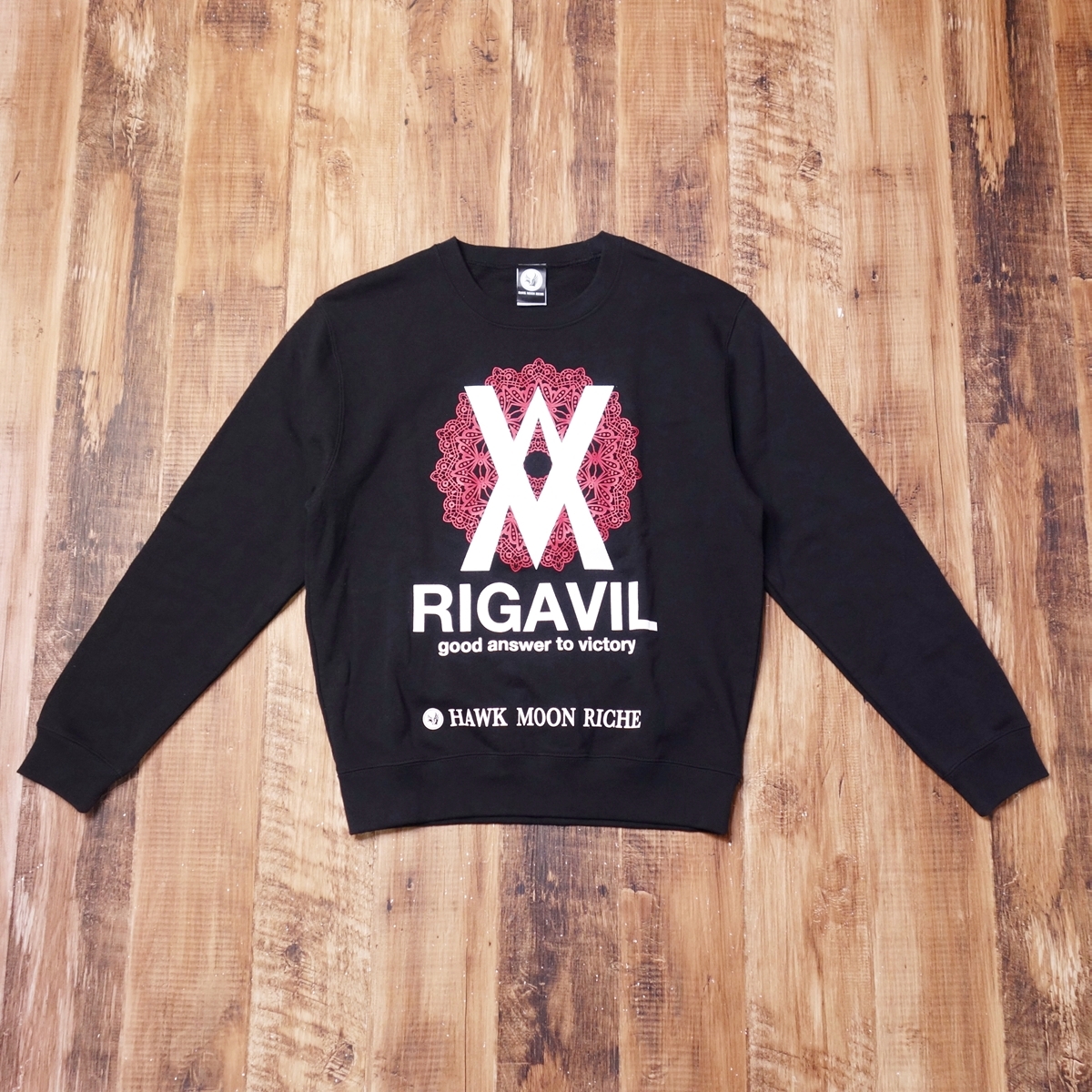 > 未使用 ホークムーンリシュ HAWK MOON RICHE プリントスウェットシャツ メンズ 長袖 プルオーバー ストリート Sサイズ 黒 MH5