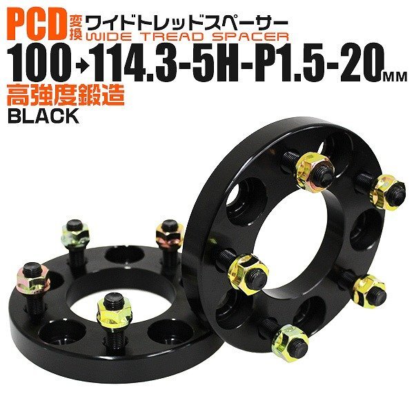 > Durax正規品 PCD変換 ワイドトレッドスペーサー 100→114.3-5H-P1.5-20mm 黒 5穴のPCD100mmからPCD114.3mm ブランド