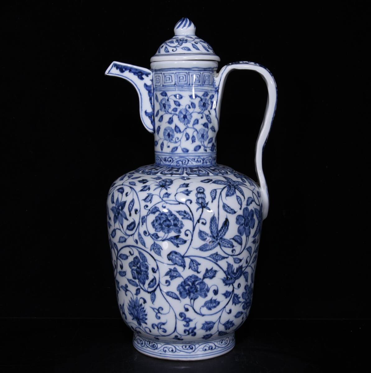 > ◆珍蔵◆中国古美術 大明宣徳年製款 青花 古陶磁 花卉紋水壷 精品 細密細工造 置物 擺件 骨董品 古賞物