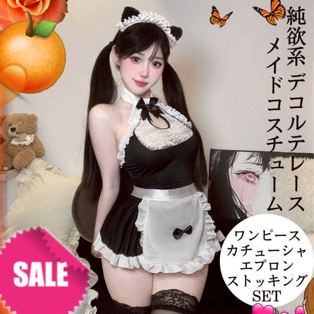 - セクシー メイド ワンピース レース ミニスカ 大人 女性 コスプレ 5点セット 日曜日まで週末SALE→コメントでお値引き♪
