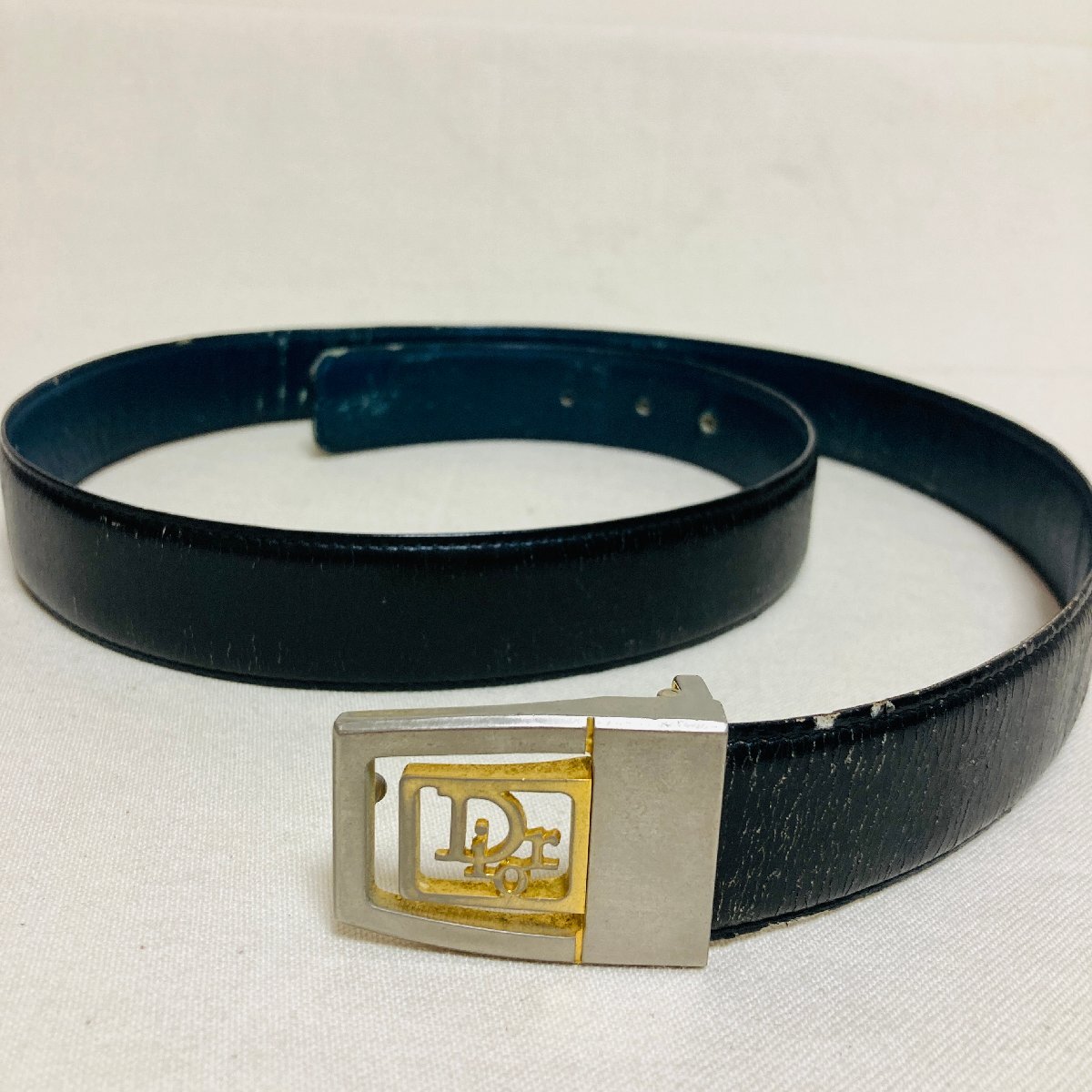 - Christian Dior MONSIEUR ヴィンテージ ロゴ 透かし デザイン バックル レザーベルト ブラック/黒
