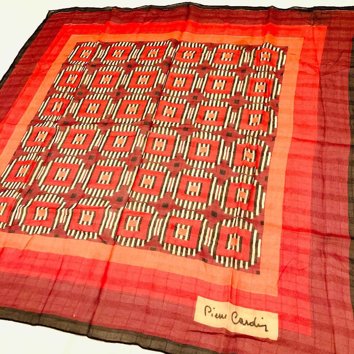 - pierre cardin PARIS ピエールカルダン 絹 シルク/SILK 100% 大判 スカーフ アート柄 レッド/ブラック系 タグあり 72 × 72cm
