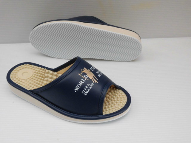 - 丈夫な日本製 ポロ健康サンダル L(26~26.5) POLO WORLD CLUB 7333 紺 紳士 メンズ スリッパ オフィス 事務所 室内 履き サンダル ケンサン
