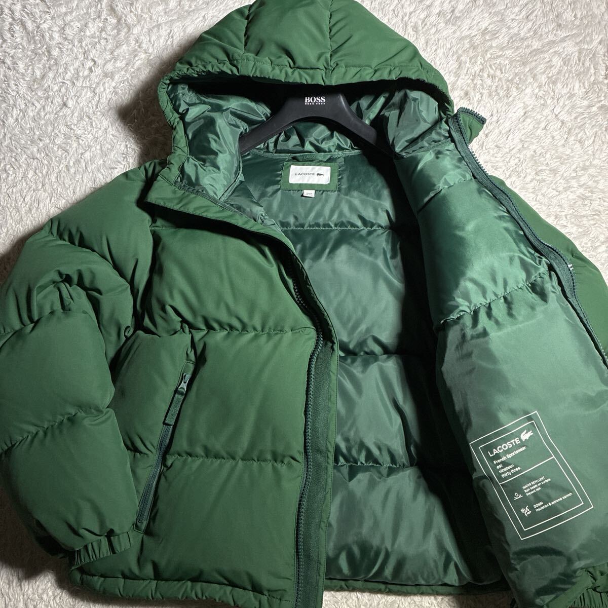 > 【ほぼ未使用・XL】極暖 LACOSTE バックステッチ ショート ダウンジャケット ラコステ アウター グリーン 極上良品 メンズ 52 大きいサイズ