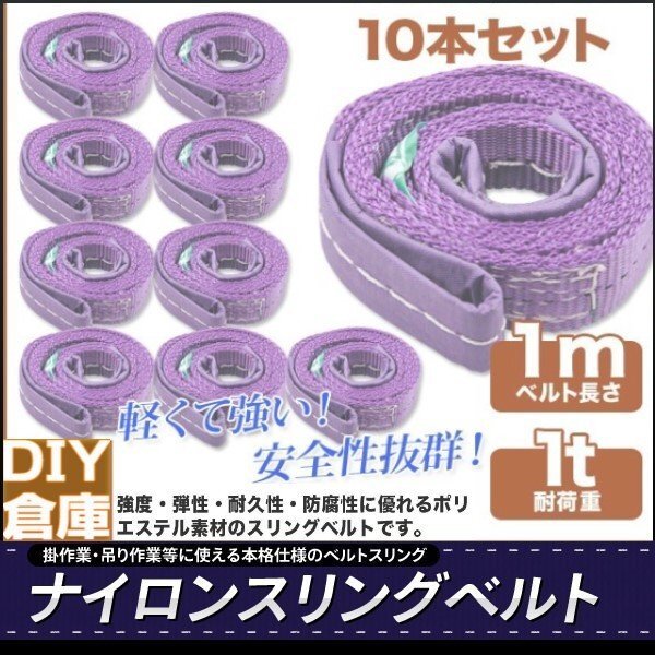 > 【送料無料】【高品質】強度・耐荷・耐久性に優れた本格派のベルトスリング 運搬用スリング ベルトスリング 1m 耐荷重1.0t 10点セット