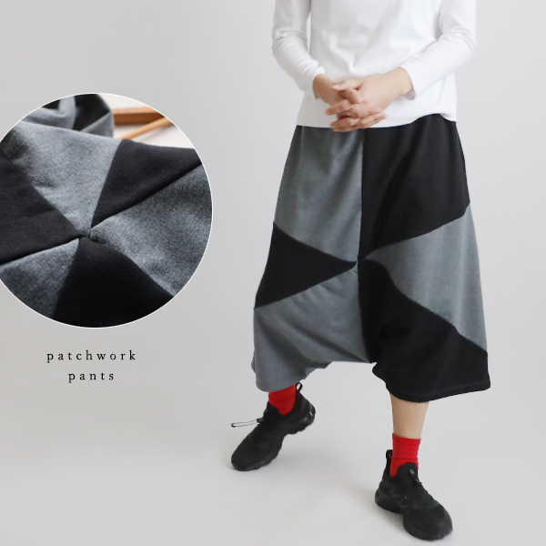 - 送料無料 秋のパンツ祭り 裏パイル スウェット生地 愉快なパッチワーク パンツ サルエル ゆったり ユニセックス Y19A