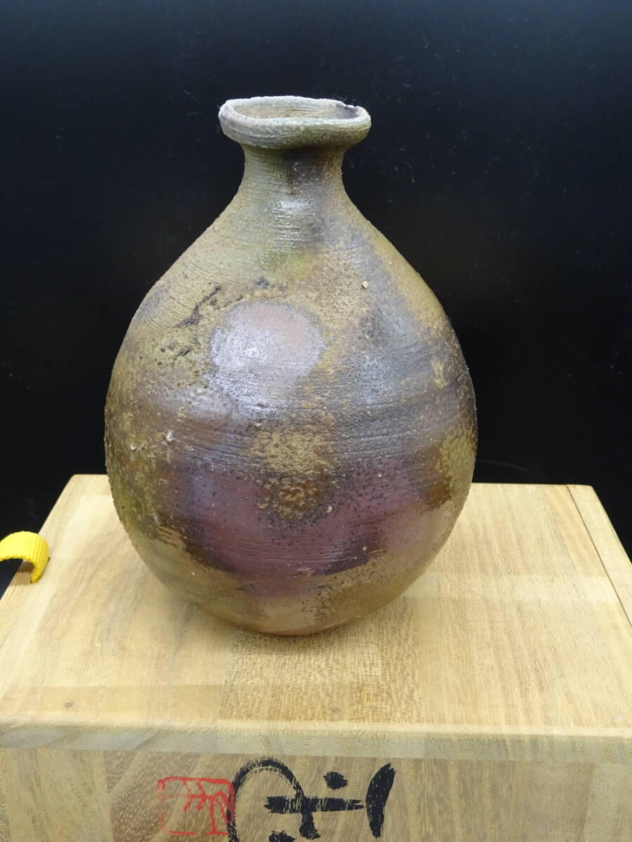 - 備前焼 人気実力作家 的野求(師:県重要文化財藤原建)★備前窯変徳利 共箱、黄布、陶歴付 酒器 茶碗 壺 茶道具