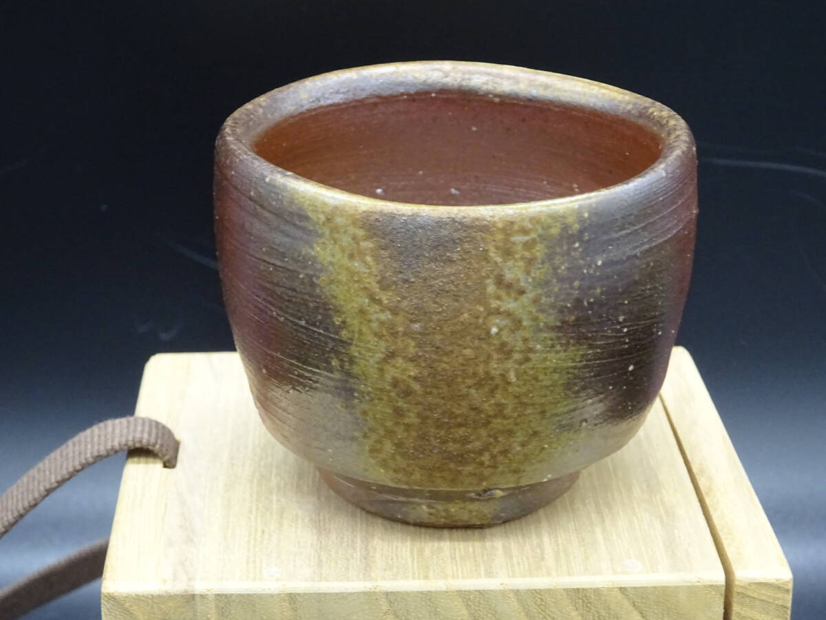 - 備前焼 人気実力作家 高原敏 工芸会正会員 伝統工芸士 ★備前黄ゴマぐいのみ 共箱、共布、陶歴付 酒器 茶碗 壺 茶道具