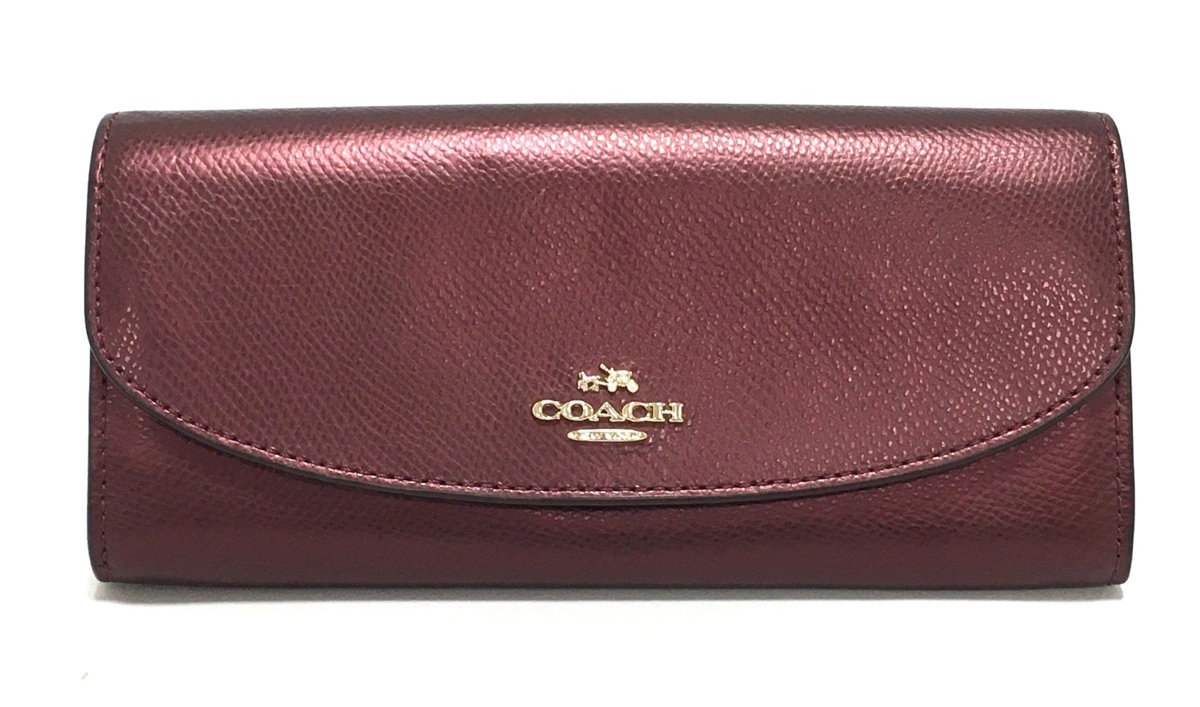 > COACH コーチ メタリックチェリーマルチ エンベロープ 二つ折り 長財布 レザー 花柄 F53570 財布