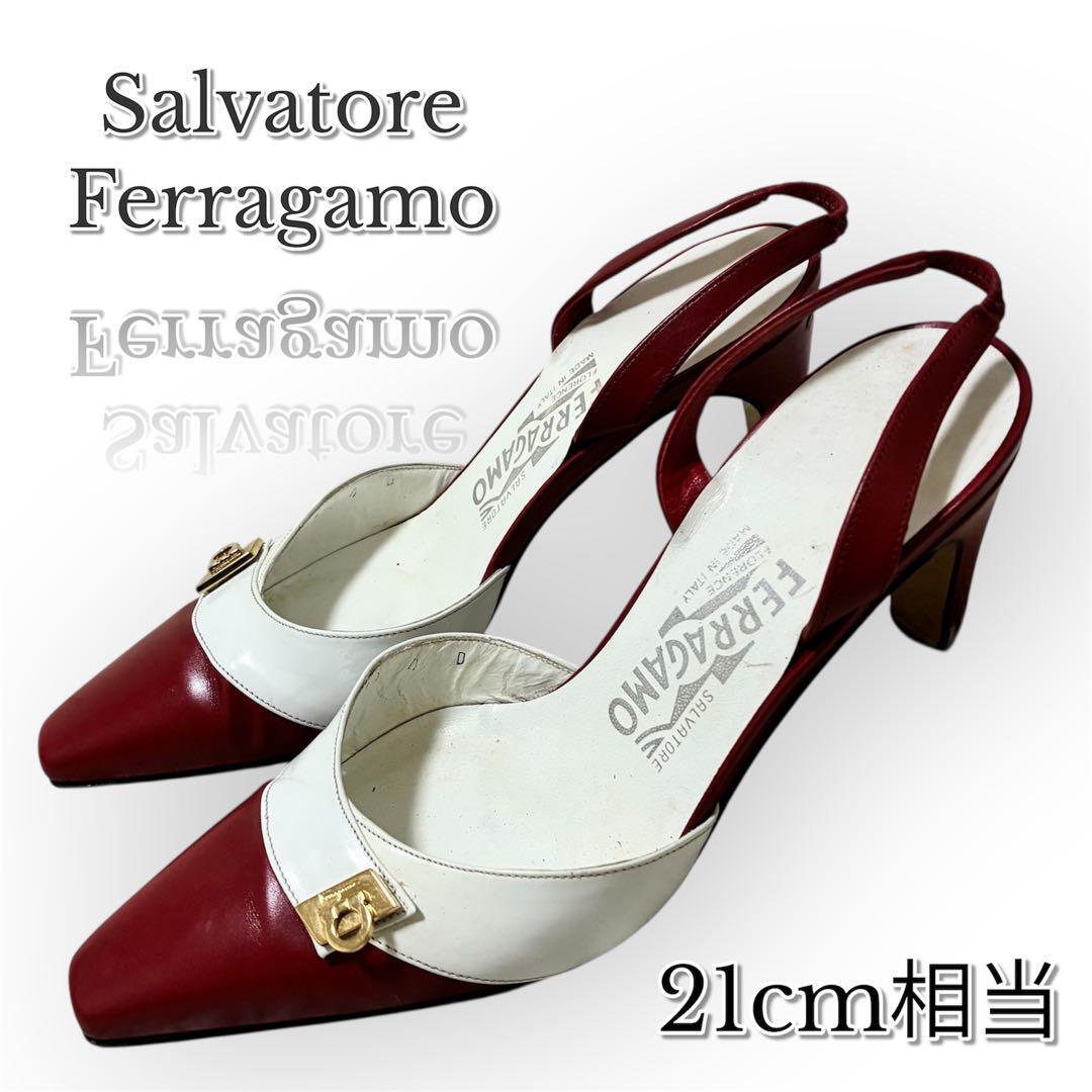 > FERRAGAMO フェラガモ パンプス ハイヒール 21cm 白 赤 小さい 4761 00890101