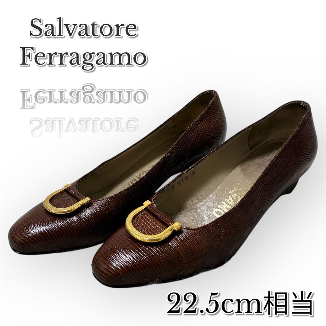 > FERRAGAMO フェラガモ パンプス ヒール 22.5cm 茶色 ガンチーニ 4787 0008801