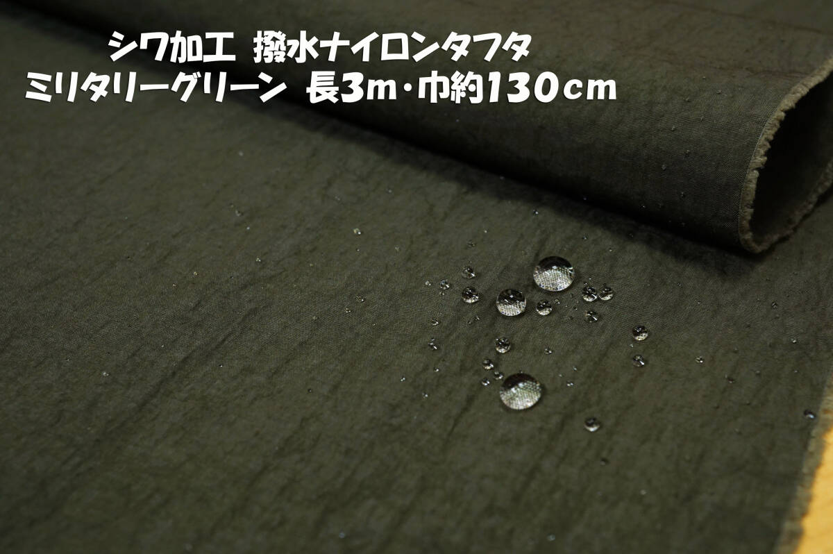 - *シワ加工/撥水ナイロンタフタ ミリタリーグリーン 微薄ややソフト微光沢 長3m巾130cm タフタジャケット タフタコート ワンピース パンツ