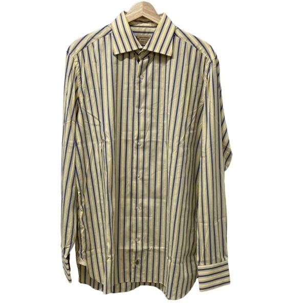 > ルイジボレッリ LUIGI BORRELLI 長袖シャツ - コットン イエロー×ブルー×アイボリー メンズ ストライプ トップス