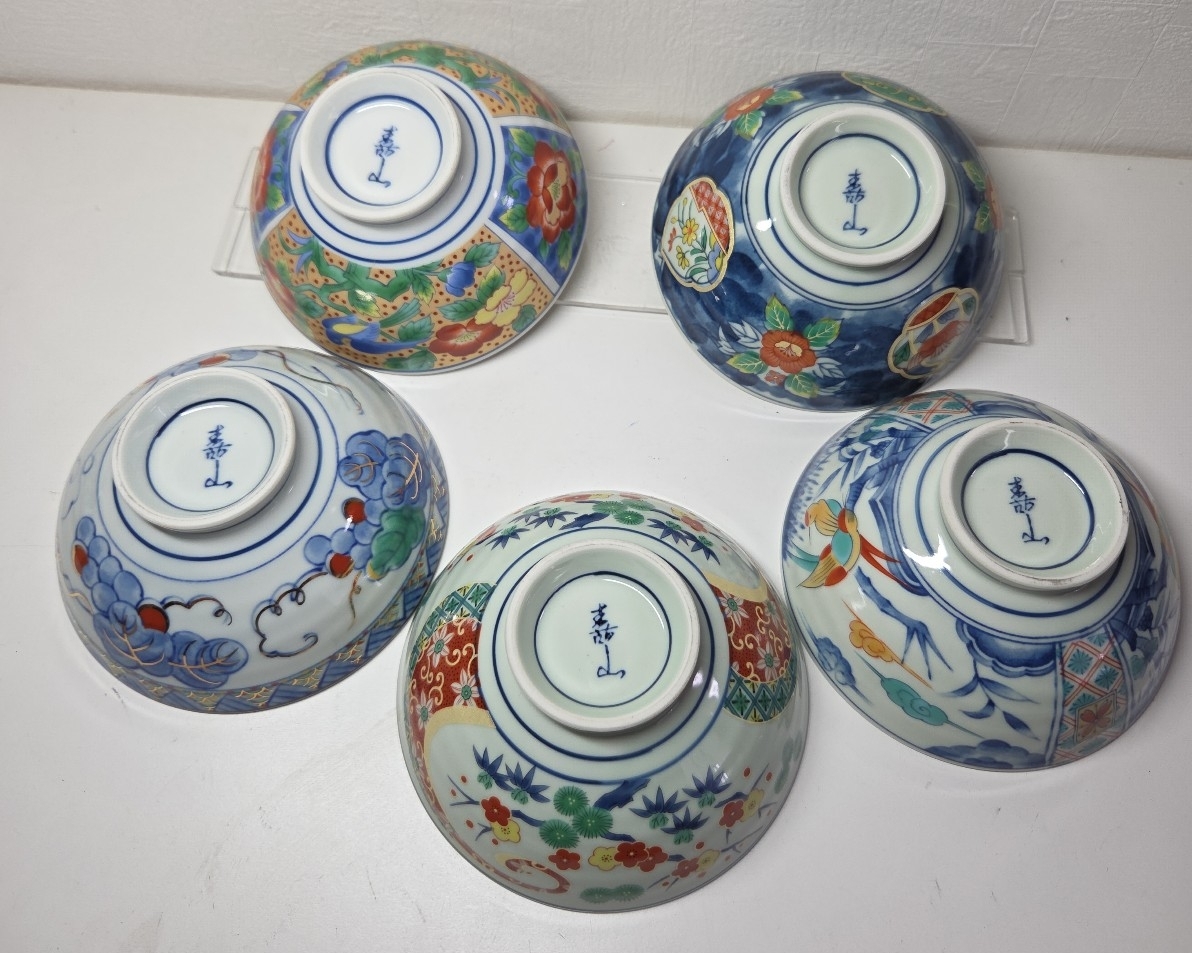 - 有田焼 嘉山窯 絵変わり お茶碗 5客セット