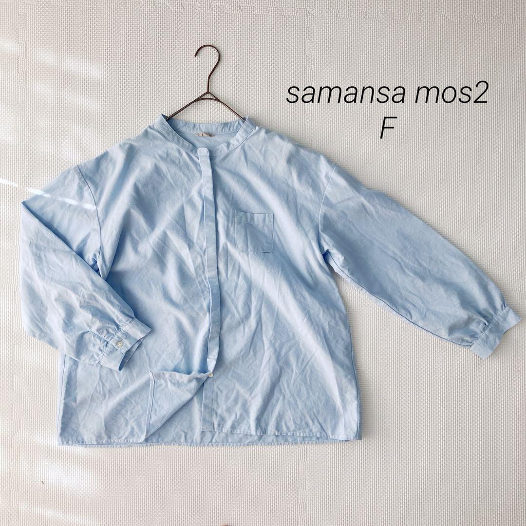 - サマンサモスモス シャツ ブラウス F ブルー 長袖 バンドカラー SM2