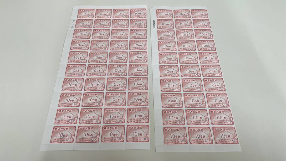 - ◎建退共証紙 赤証紙 10日券 3200円×70枚 合計224000円