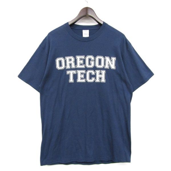 > サイズ L PORT&COMPANY 半袖 Tシャツ ネイビー プリント OREGON TECH ポート&カンパニー 古着 ビンテージ 5S2605