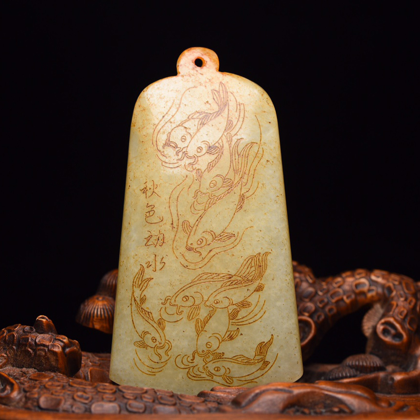 - 9_YF0103【惠】人間国宝 和田玉 雕刻【和田玉魚札です】 中国古玩 中国骨董 伝世珍品 風水秘蔵 傳世家珍