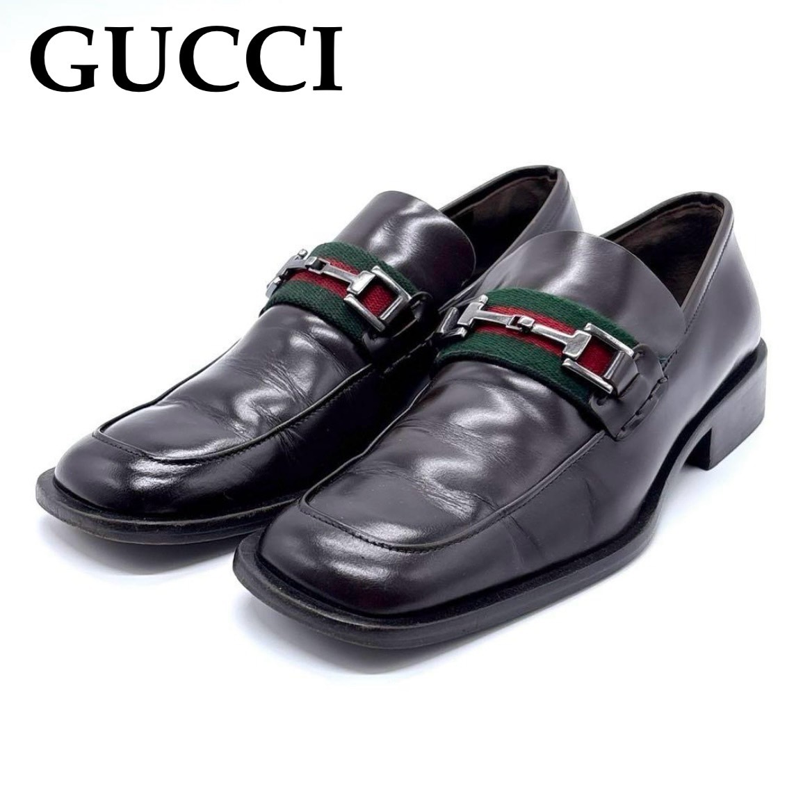 > 極美品 GUCCI グッチ 23.5cm ローファー ホースビット スクエア シェリーライン レディース 靴 シューズ