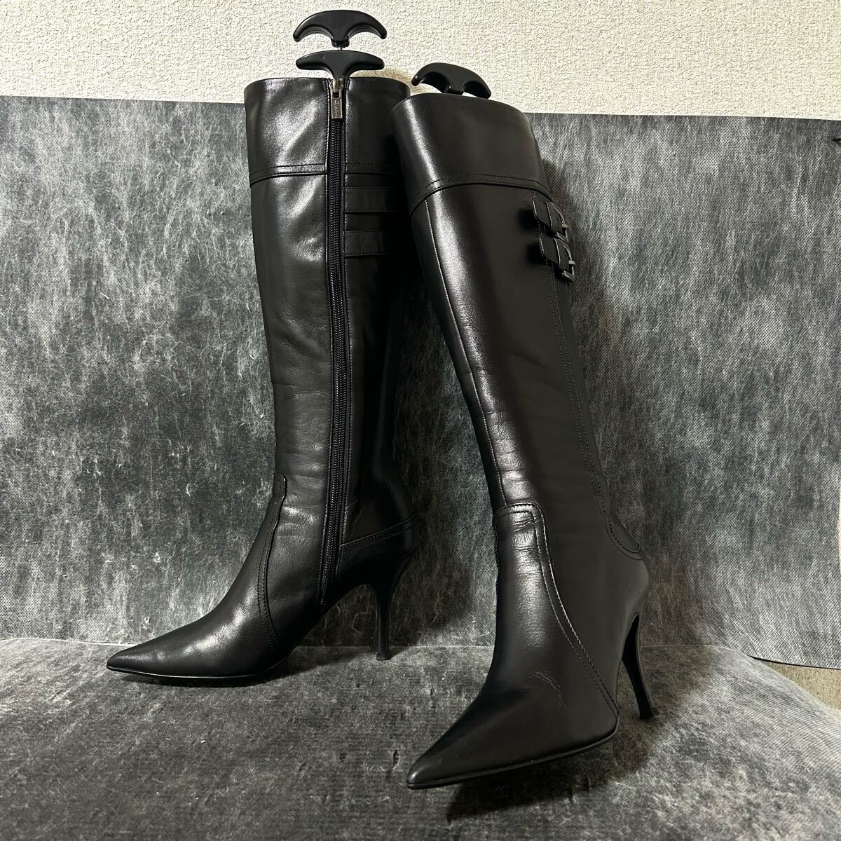 - DIANA ダイアナ ロングブーツ サイドジップ ヒールブーツ レザー 23.5cm ブラック *ET