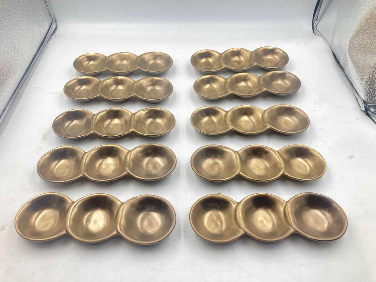 - ほぼ未使用 10客 金塗り 向付 日本料理 懐石料理 刺身皿 先付け ゴールド 在庫残りわずかです