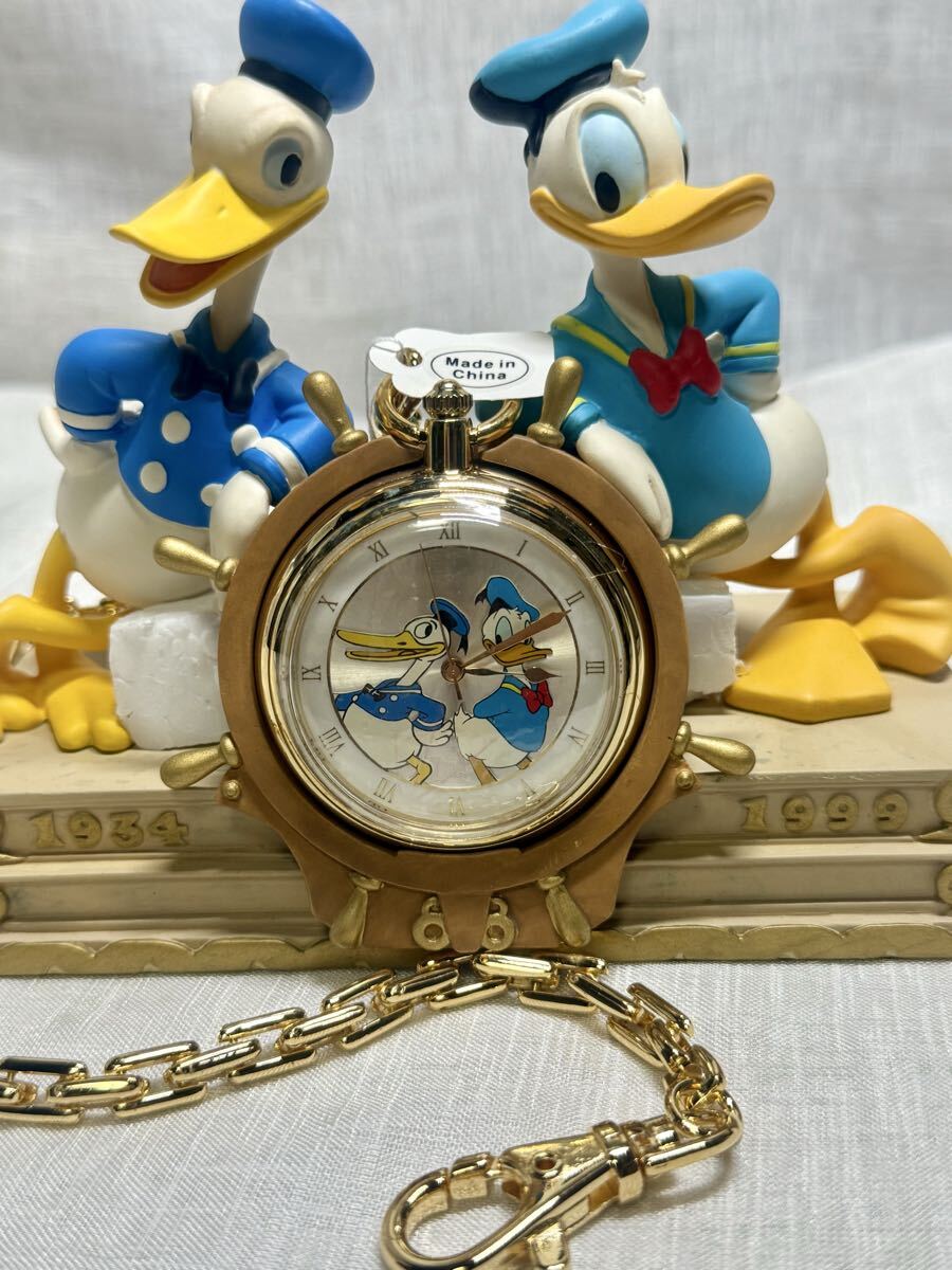 - ディズニー ドナルドダック バースデーウォッチ 懐中時計 フィギュア付き 未使用品 当時物 65周年