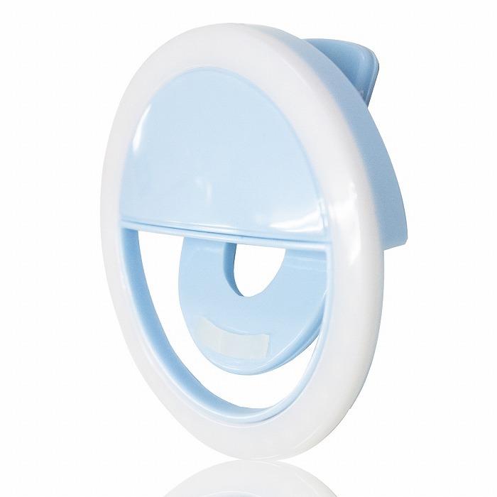 - 【送料無料】自撮り用 LEDライト セルフィーリングライト クリップ式 36LED ブルー/青