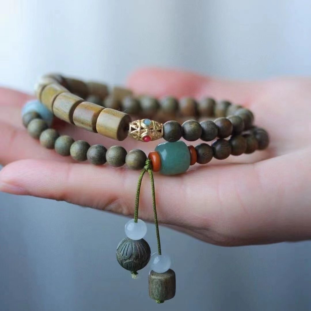 > 送料無料!緑白檀 二重輪 手串108本 仏珠 天然木 数珠 ブレスレット 風水 厄除け 縁起物 開運 守り神 金運 擺件装飾 fgcq114