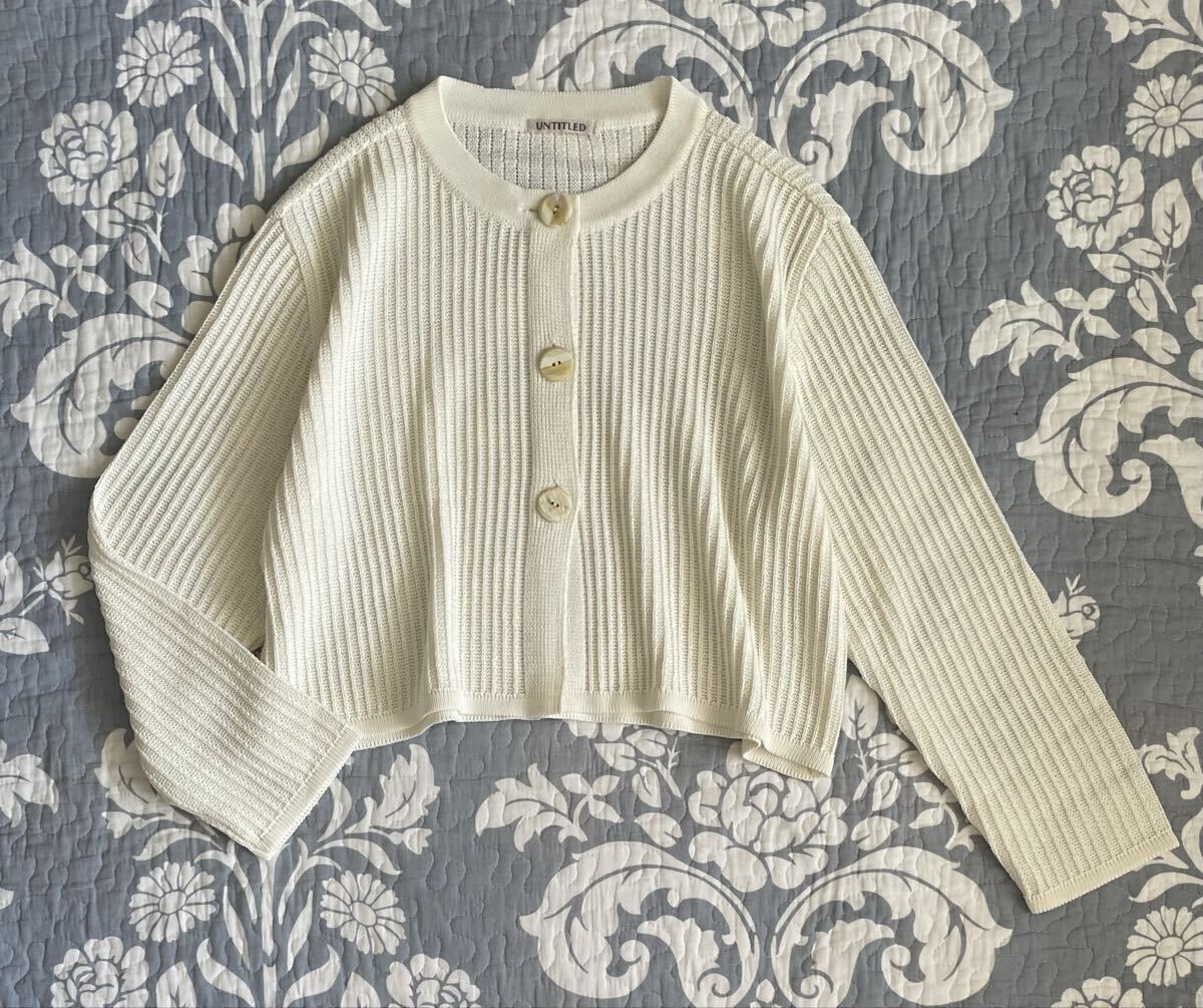 > UNTITLED カーディガン クルーネック アイボリー ク ロップド 長袖 リブ編み アクリル ボレロ アンタイトル 日本製 9