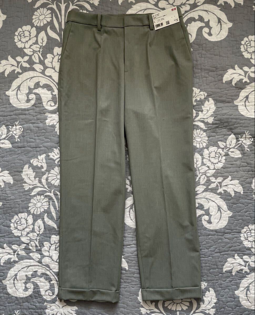 - 未使用タグ付きユニクロ スマート アンクル パンツ 丈長め 薄緑 GREEN ポリエステル センタープレス L 定価3,990円