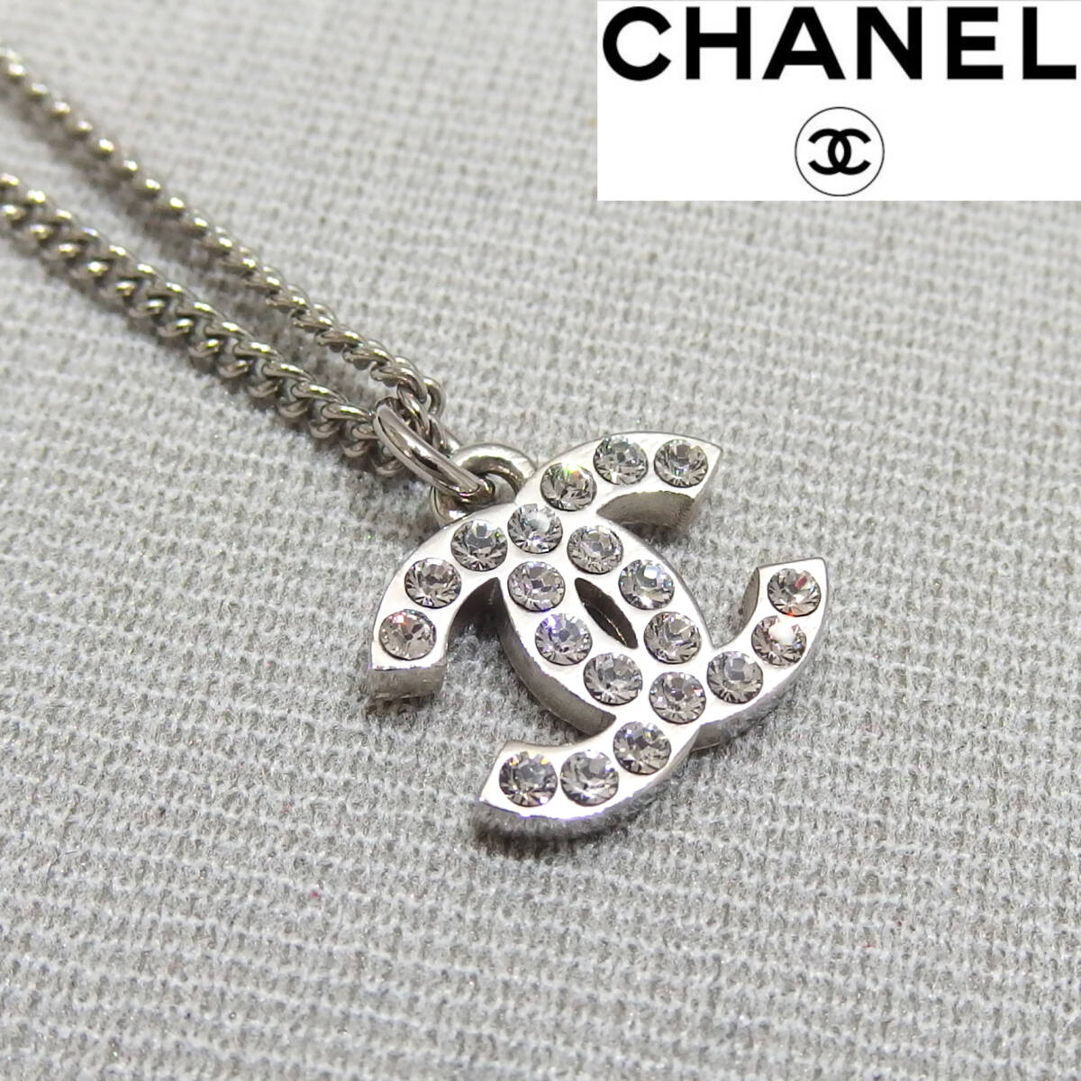 - 美品★CHANEL ココマーク ラインストーン ペンダント ネックレス F12 シルバー クリア シャネル★